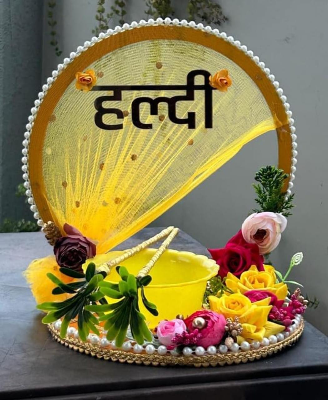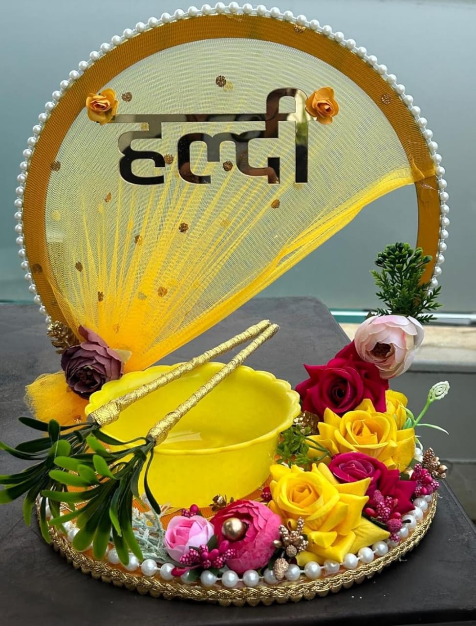 Simplify your wedding rituals with the HALDI Ring Platter by JNK TRENDS . This beautifully crafted platter is designed to hold your precious rings during the haldi ceremony, ensuring their safety and easy accessibility. Enjoy the convenience and elegance of this expertly designed wedding accessory.