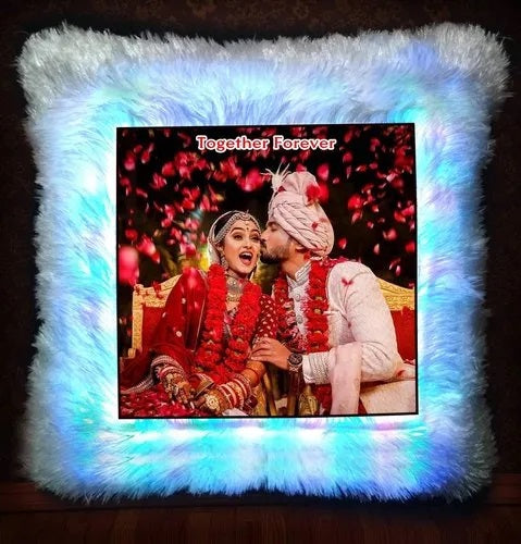Customised Led Photo Pillow Cushion for Couples/Kids/Friends/Parents with Your Photo and Filler with Battery