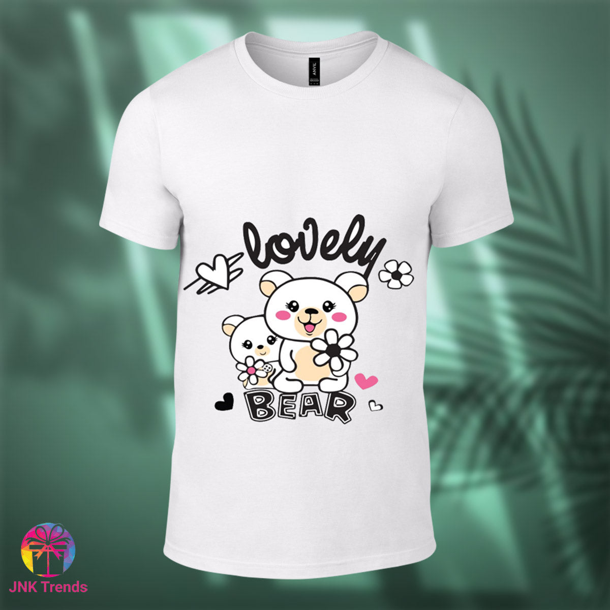 This white t-shirt features a charming and whimsical print of a lovely bear, perfect for adding a playful touch to any outfit. Made from high-quality materials, it offers both style and comfort for everyday wear. Bring a touch of cuteness to your wardrobe with this Lovely Bear- Printed White Tshirt.