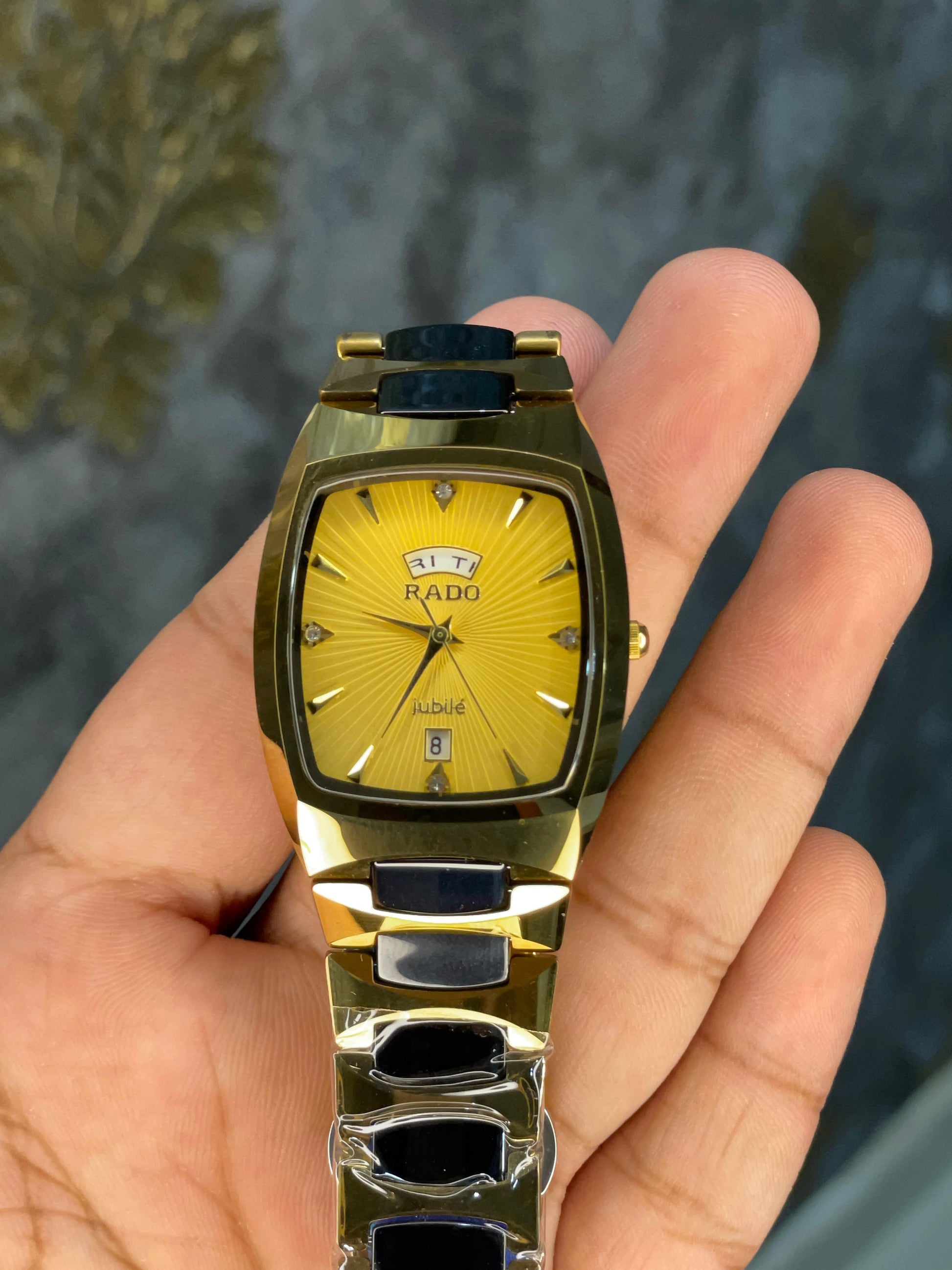 This RADO Ceramic Golden Watch is made of high-quality ceramic and features a luxurious golden design. Its durable materials ensure long-term durability and its stylish appearance makes it a timeless addition to any wardrobe. Perfect for those seeking a sophisticated and elegant timepiece.